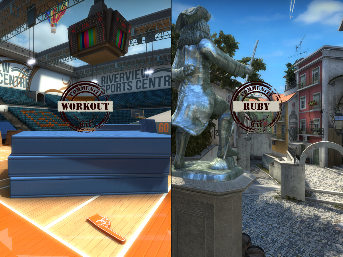 W dzisiejszej aktualizacji do CS:GO wprowadzamy dwie mapy: Ruby, osadzoną w scenicznym miasteczku w Portugalii mapę z zamachem bombowym oraz Workout, ulubioną mapę społeczności z zakładnikami. Tym samym żegnamy się z innymi dwiema mapami stworzonymi przez społeczność, Abbey i Biome.